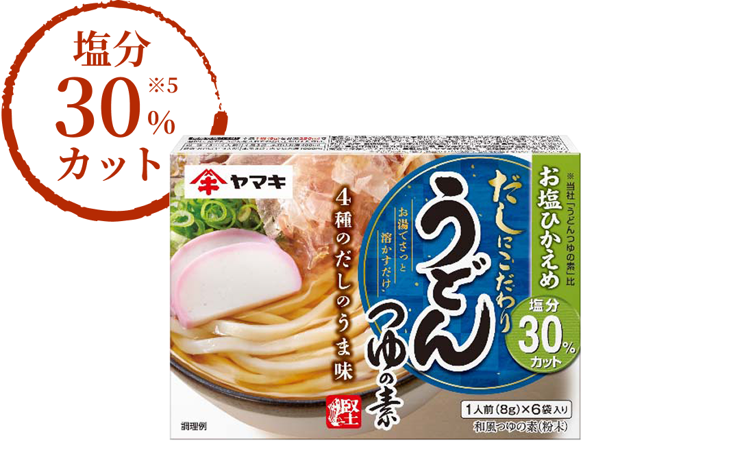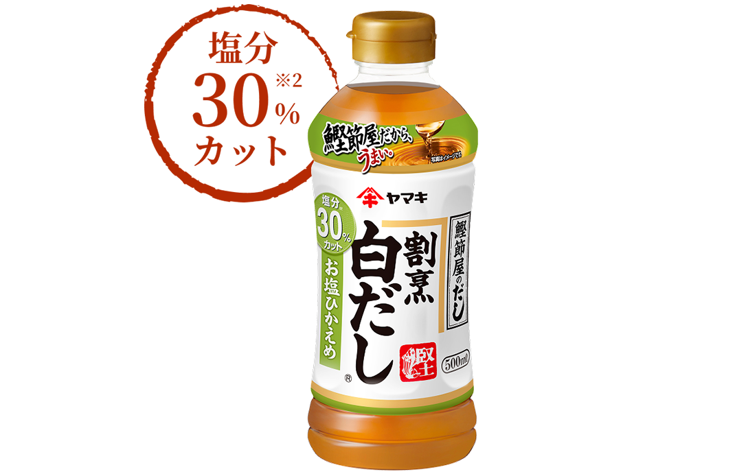 30%カット(※2)の減塩白だしです。どんな料理
