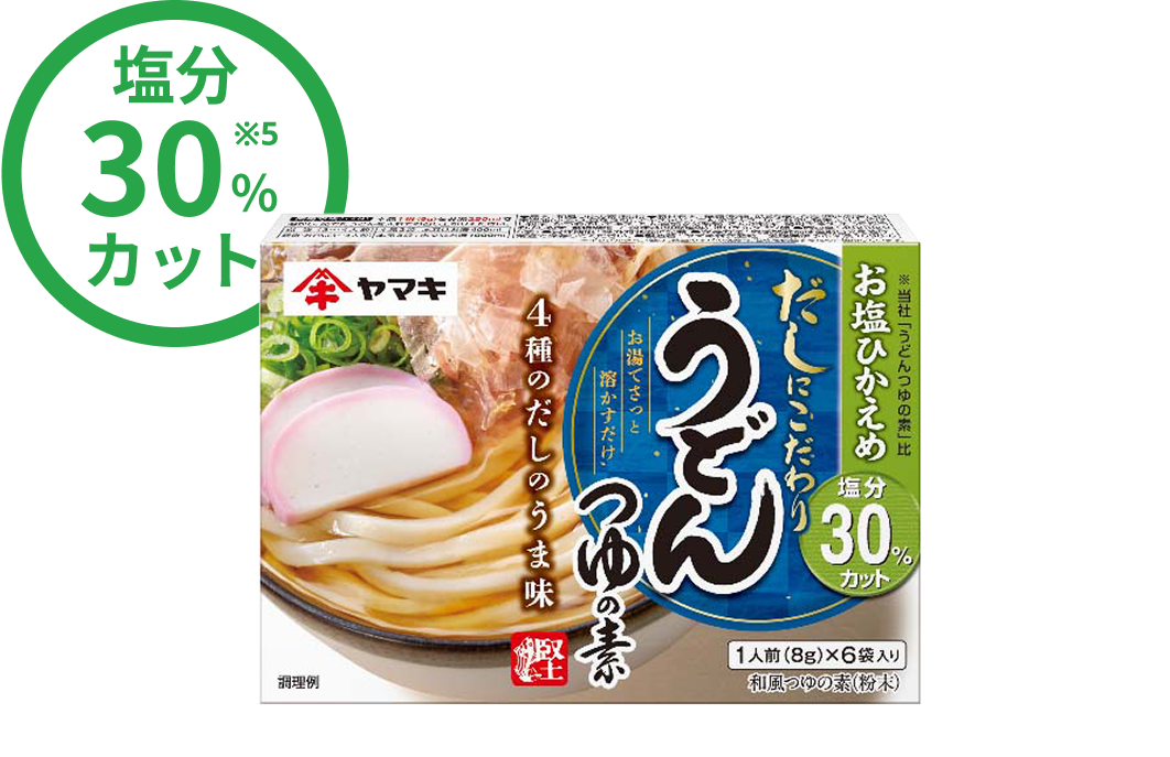 30%カット(※5)のうどんつゆの素です。※5 当社「うどんつゆの素」比