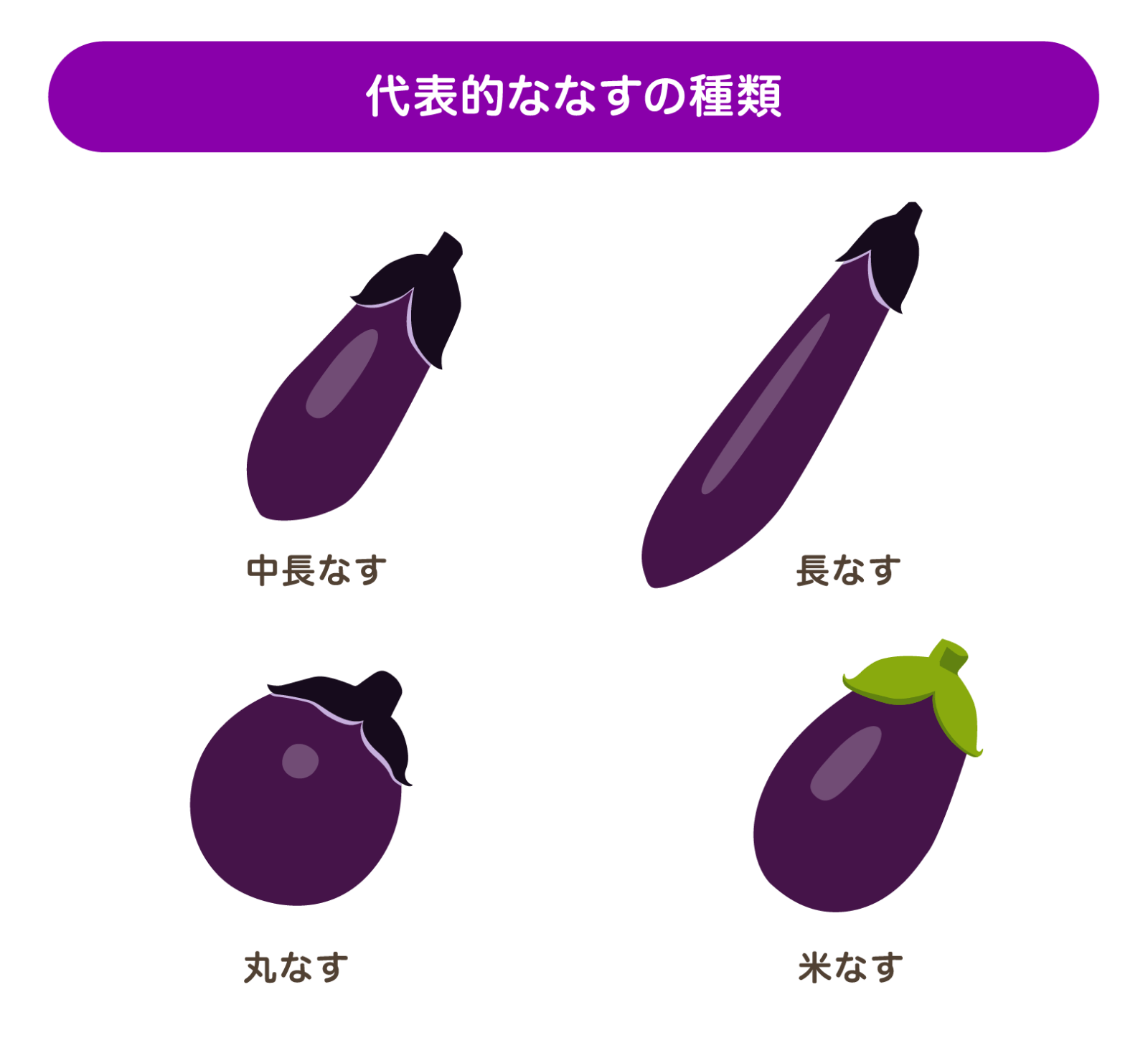なすには多くの種類がありますので、代表的なものをご紹介します(注3,4)。