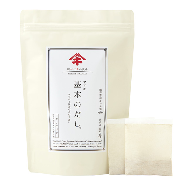 「ヤマキ基本のだし® だしパック かつおと昆布の合わせだし 30袋入り」は、ヤマキ公式オンラインショップおよび一部通販サイト限定で販売している、ほんのり下味を付けた日常使いのだしパックです。2016年の発売以来、日常の食卓に寄り添う“だしのスタンダード”としてご愛用いただいています。