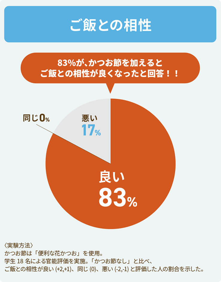 官能評価の結果、お好み焼きにかつお節を加えることで「うま味」「コク」「芳ばしさ」が強まり、味にまとまりが出ることが確認されました。また、肉のくさみが弱まる傾向も見られ、ご飯との相性が良くなったと回答した学生が83%にのぼりました。学生からは、「かつお節のうま味がソースの風味を向上させていた」、「かつお節をかけた方がご飯との相性が良かった」といった声が寄せられました。加えて、調理学の視点から本田講師のコメントも掲載し、科学的な観点からお好み焼きとかつお節の相性を検証しています。