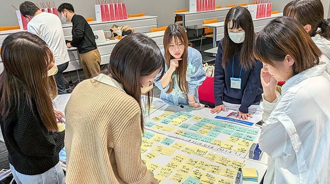 7つのグループに分かれ、ターゲットや生活者のインサイトを整理しながら、アイデアを具体化。最後は、スキット形式にて発表しました。