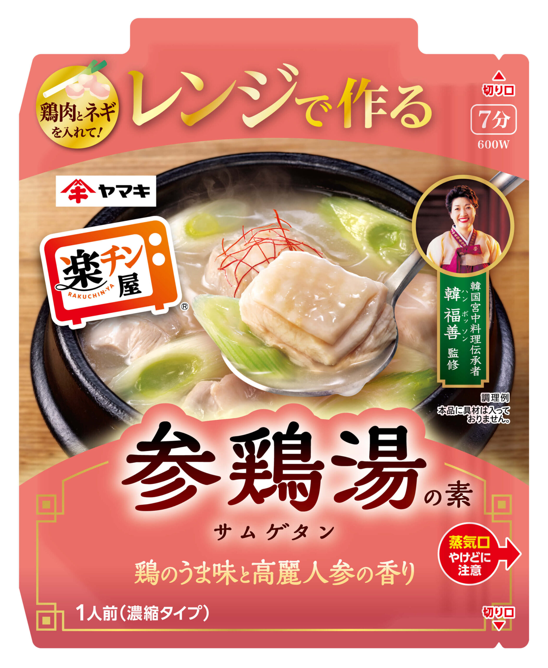 具材を入れて電子レンジで加熱するだけで、本格的な参鶏湯が完成。韓国宮中料理伝承者・韓福善氏監修のもと、鶏のうま味と高麗人参の香りを生かした、やさしくも奥行きのある味わいが特長です。