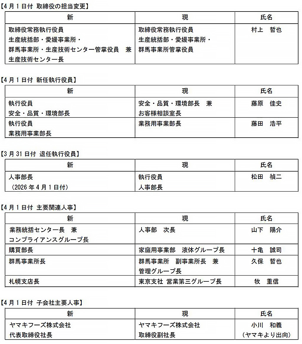 ヤマキ株式会社(本社:愛媛県伊予市 代表取締役社長:城戸善浩 以下ヤマキ)は、下記の通り組織変更および人事異動を行いますのでお知らせします。