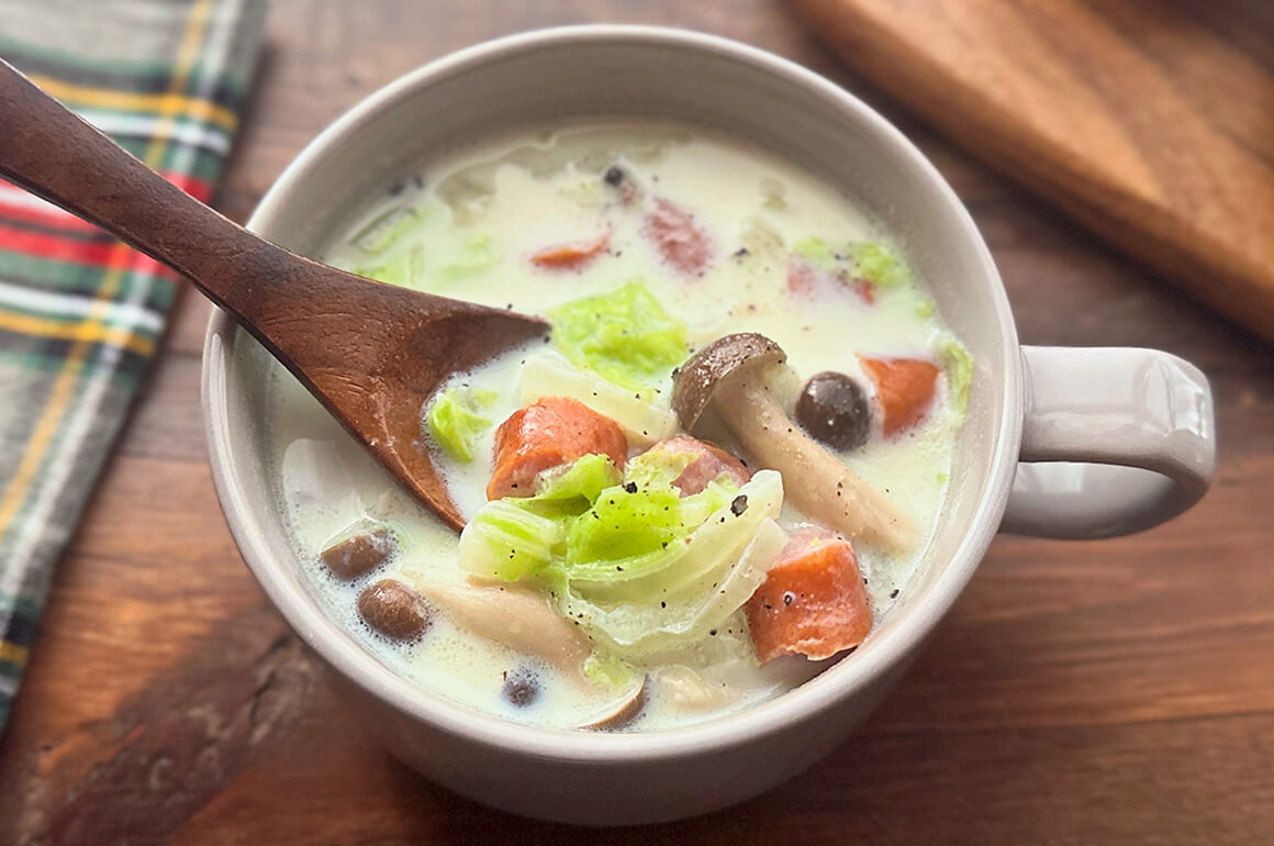 鍋に【A】を合わせ、ひき肉を加えてほぐし混ぜる※。中火にかけて混ぜながら、沸騰したらアクをすくい、かぶを加えて弱火で5分煮、だしパックを取り出す。