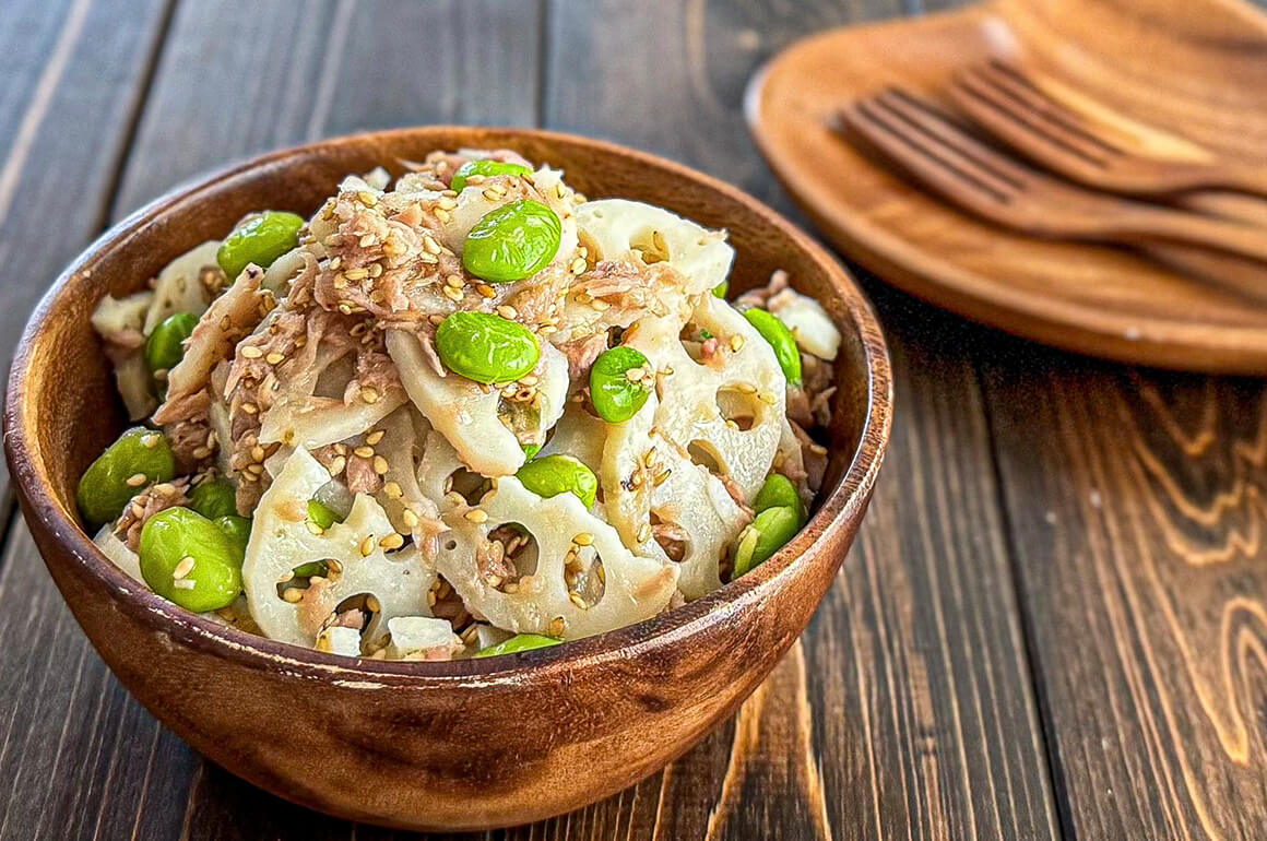すりおろした山いもに「割烹白だし」と水を入れ混ぜ合わせる。